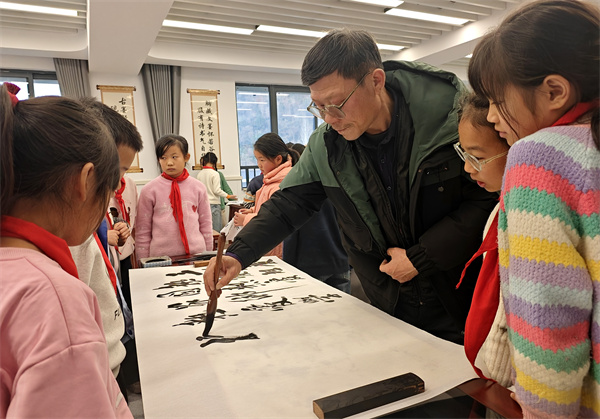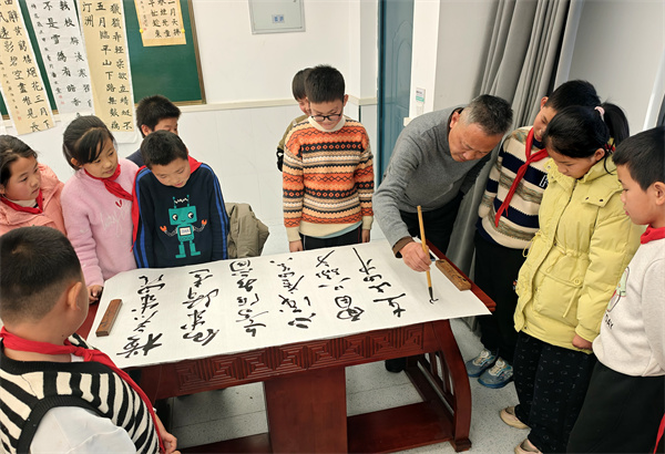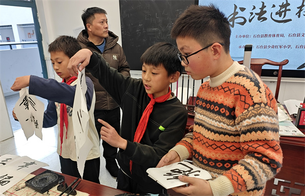 此次传统文艺进校园活动聚焦“文艺走基层、进万家”主题,以讴歌党、祖国、人民与英雄为重点,引导广大文艺工作者争做新时代“文艺先锋队”,将优质文艺资源送入基层校园,进一步弘扬社会主义核心价值观,展示石台校园文化建设的崭新风貌。在为期2天的首场活动中,县书法协会组织文艺工作者进行了现场文艺创作,开展送书法作品进校园行动,并走进课堂,通过讲解书法历史、示范书写技法,指导学生进行实践创作,让孩子们近距离感受翰墨之美,激发对中华优秀传统文化的兴趣。期间,志愿者们还特别关注留守儿童群体,通过耐心辅导与互动交流,丰富其课外生活,提升文艺素养。