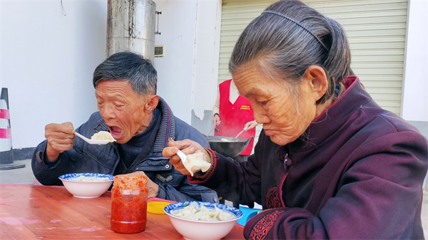 大家边包饺子边聊家常,不时分享包饺子的技巧和心得,交流生活趣事,场面温馨而祥和,充满着“家”的味道和温暖,小小的饺子满含着了大家对美好生活的向往。村民王奶奶说:“平时我一个人在家很孤独,今天大家一块包饺子、煮饺子,特别热闹,这样的活动让我们老人觉得很暖心,特别有归属感”。