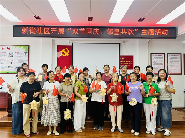 9月28日,仁里镇新街社区新时代文明实践站开展“双节同庆、邻里共欢”主题活动。巧手做花灯、欢歌跳手势舞、趣味抢月饼,邻里们欢聚一堂,让团圆与家国情怀在欢笑中交融。