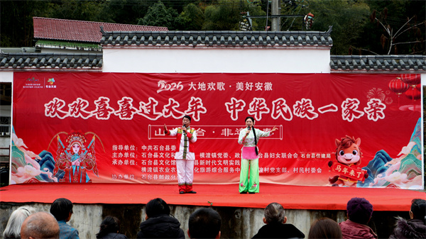 新春的脚步渐近,年味越来越浓。2月5日上午,一场由石台县委宣传部指导,石台县文旅局、横渡镇党委、政府、石台县妇女联合会、石台县住建局联合主办的“欢欢喜喜过大年 中华民族一家亲”春晚活动在横渡村文化广场成功举办。