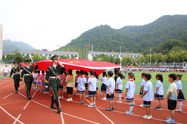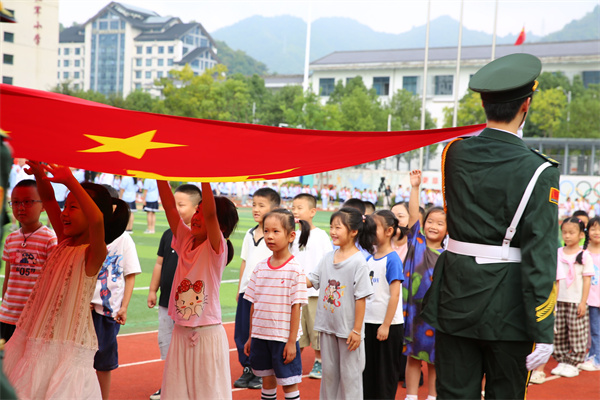近年来,石台县少奇红军小学充分利用红色教育资源,积极开展各类爱国主义教育活动,已成为全国国防教育示范学校、全国五星级红军小学。该校将国庆前一周的周一确立为“天安门广场国旗教育展示日”,是红色育人工作的深化与提升,赋予了爱国主义教育的重要载体,旨在让全校师生近距离感受国旗的庄严与伟大,深刻理解国旗背后所承载的历史重托和时代使命。(陈善慧 舒思静)