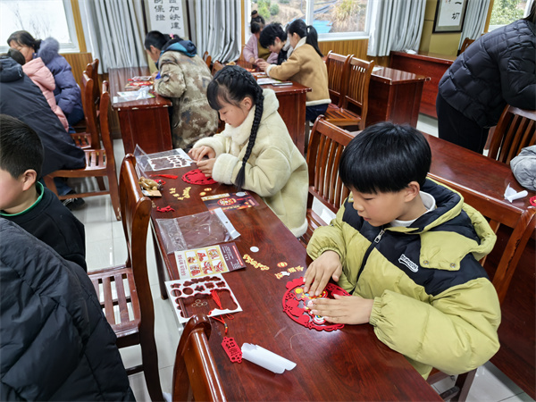 红纸翻飞间,年味愈浓。窗花手工制作环节,孩子们在志愿者的指导下,手持红纸与剪刀,认真折叠、精心裁剪。一双双小手灵活操作,普通的红纸在指尖化作形态各异的窗花,吉祥的福字、灵动的生肖图案,搭配孩子们天马行空的创意设计,每一件作品都充满童趣与年味。孩子们在动手实践中感受中华优秀传统文化的魅力,体验手工创作的乐趣,为新春佳节增添了喜庆氛围。